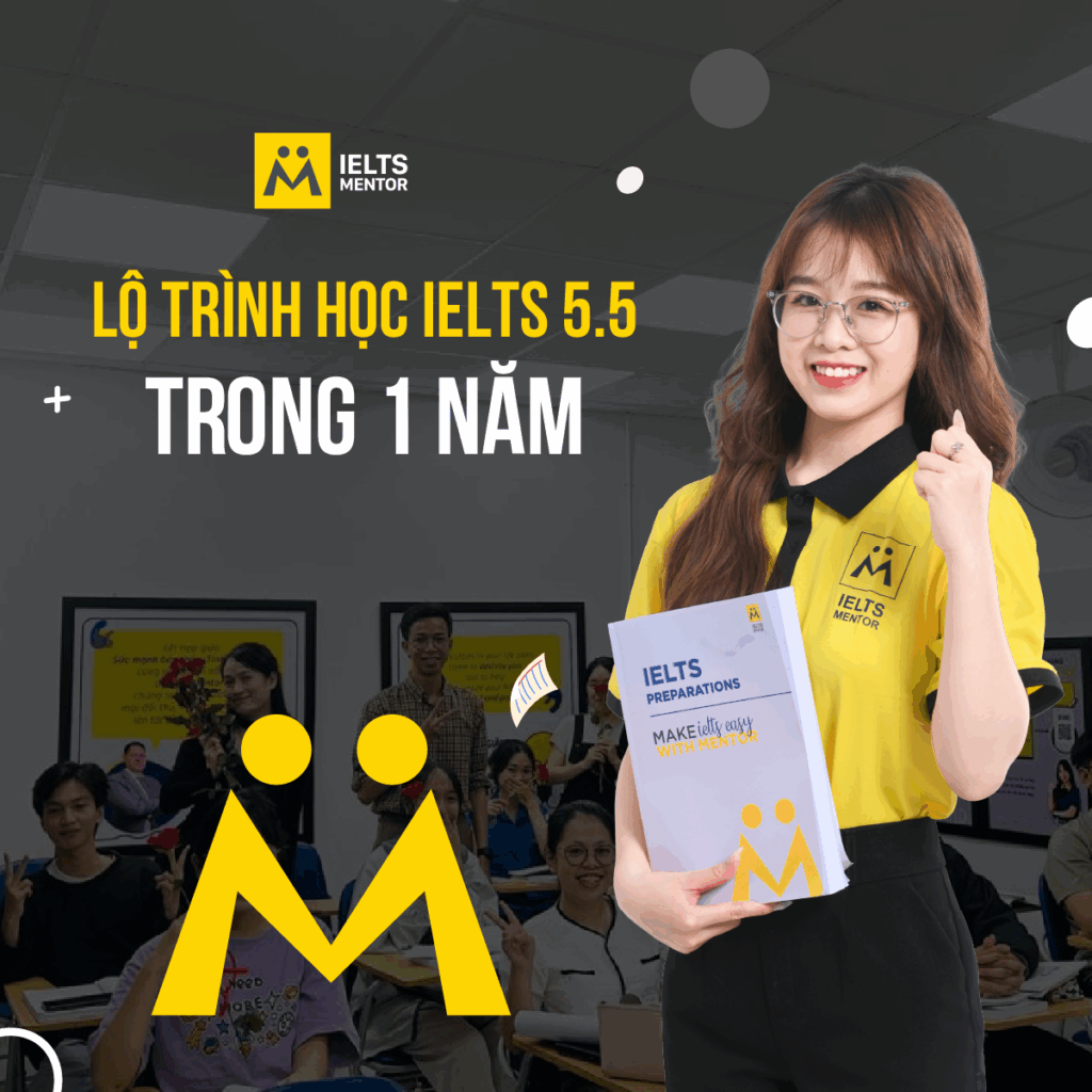Nếu bạn muốn có lộ trình học cá nhân hóa và giáo viên đồng hành, hãy tham khảo các khóa học tại IELTS Mentor. Bạn cũng có thể kết nối với cộng đồng học tập qua fanpage IELTS Mentor để nhận thêm tài liệu miễn phí và kinh nghiệm thực tế. Ngoài ra, đừng quên theo dõi kênh YouTube IELTS Mentor để học qua video trực quan, dễ áp dụng.