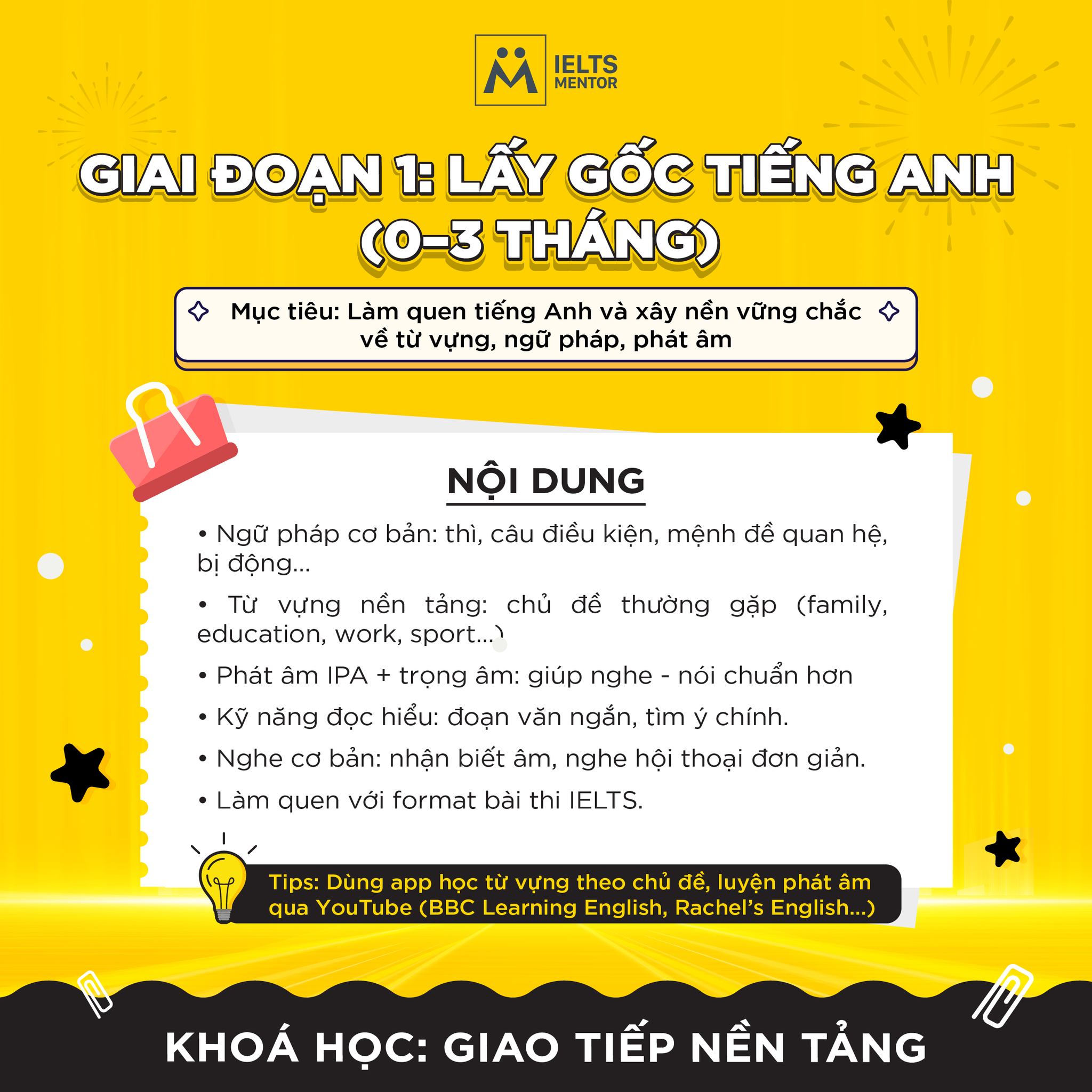 Mất gốc nền tảng tiếng Anh cơ bản.